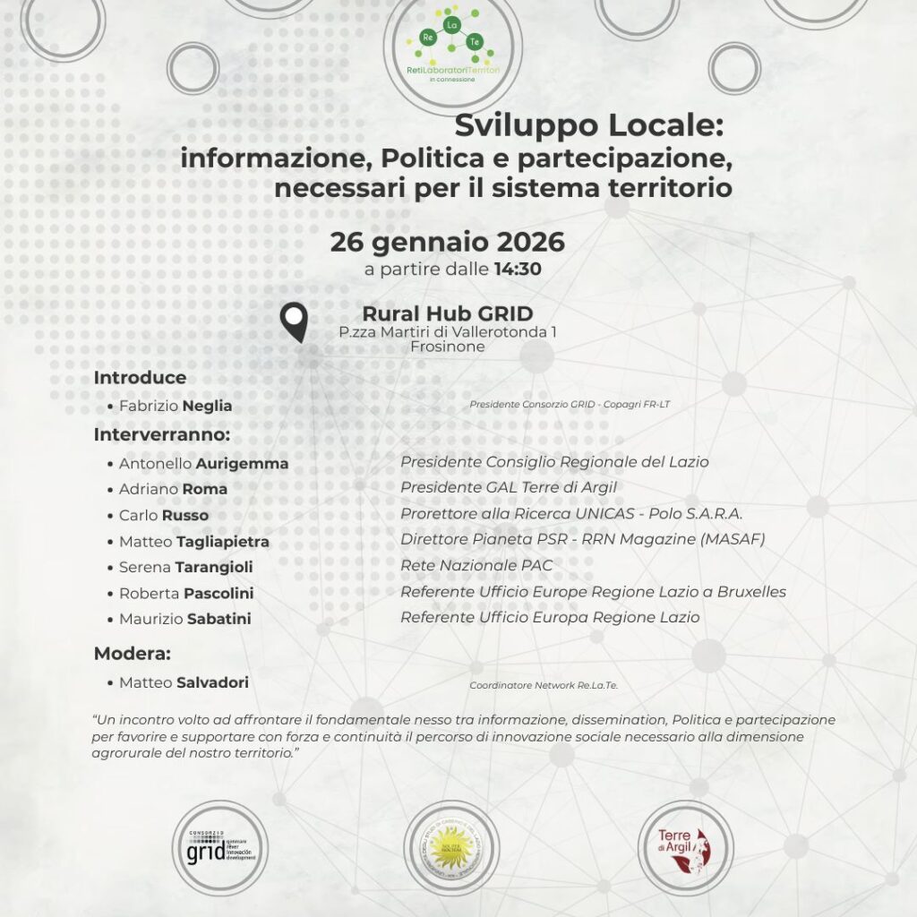 Sviluppo locale, informazione e partecipazione: a Frosinone un confronto sul futuro dei territori rurali Il 26 gennaio 2026, a partire…